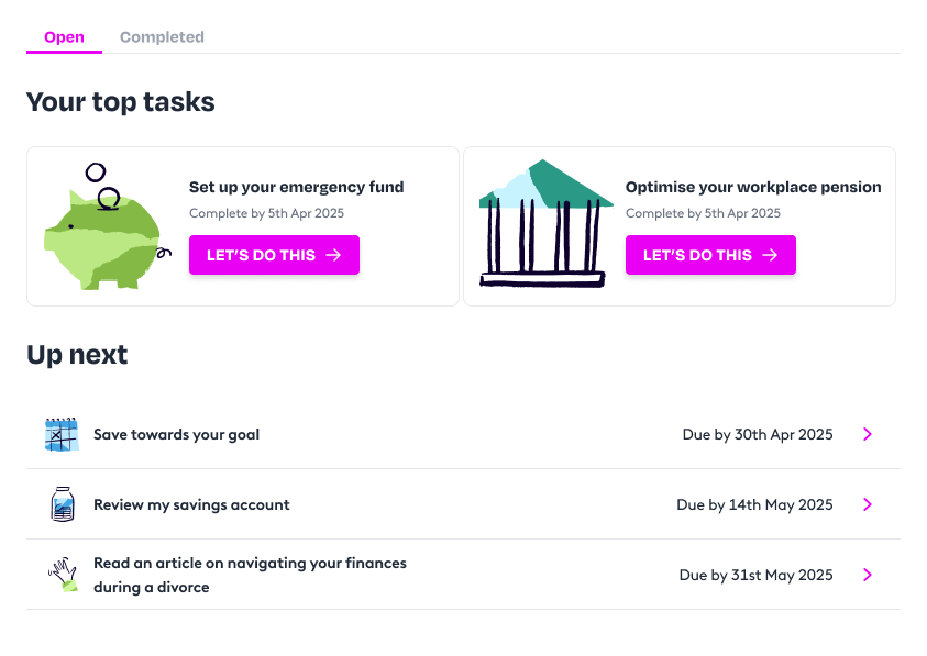 After their free 1-to-1 session, employees can choose to build a personalised financial plan with their coach or adviser using our interactive planning tools