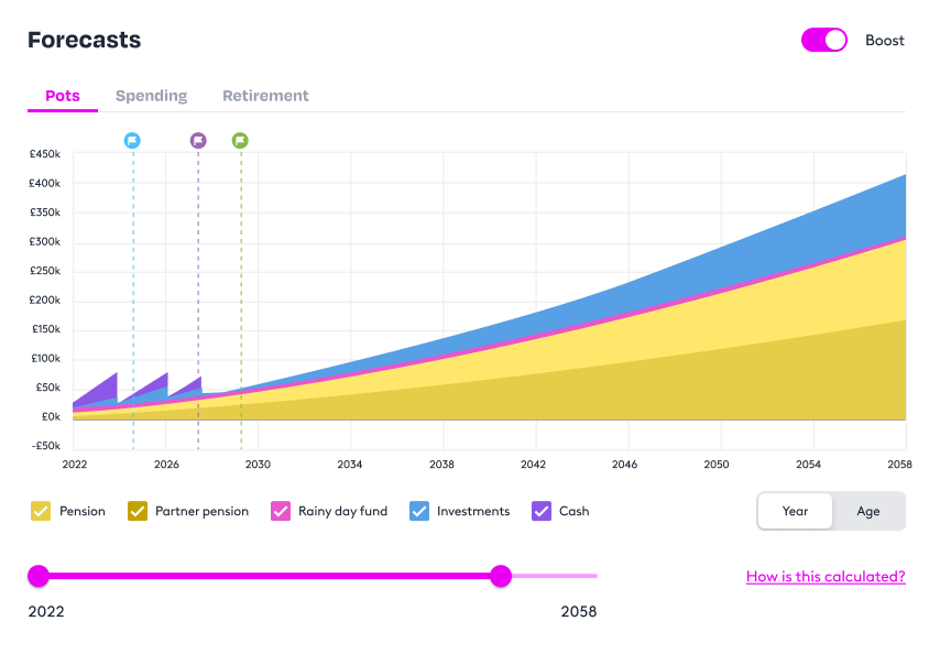 - See all their finances in one place – projected from now to retirement